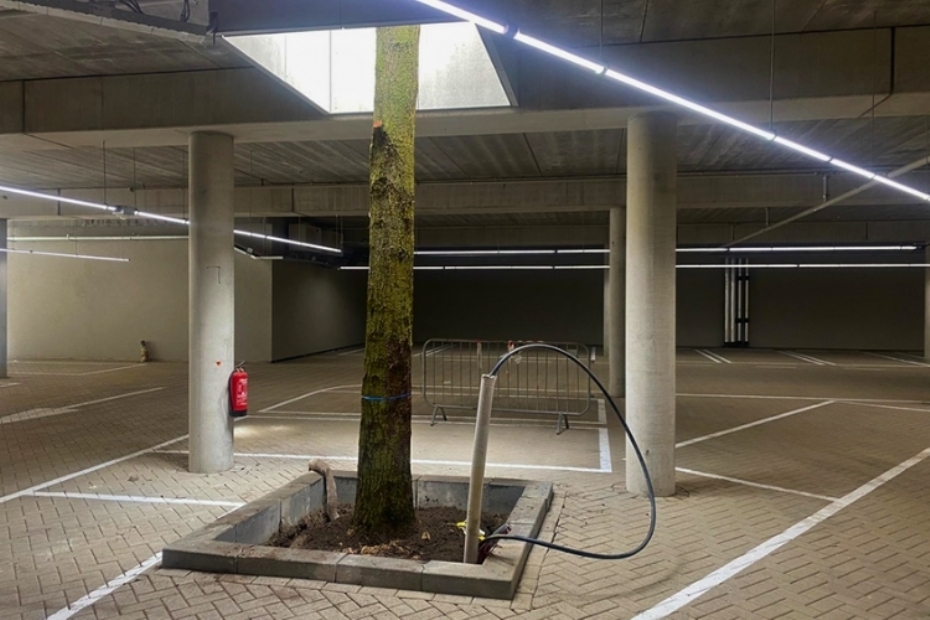 Gedurende het project hebben zijn er drie grote bomen door het dak van de kelder geplaatst. In de parkeerkelder is een ondergrondse groeiruimte gecreëerd en zijn voorzieningen gemaakt om de bomen apart van elkaar te monitoren en water te geven.
