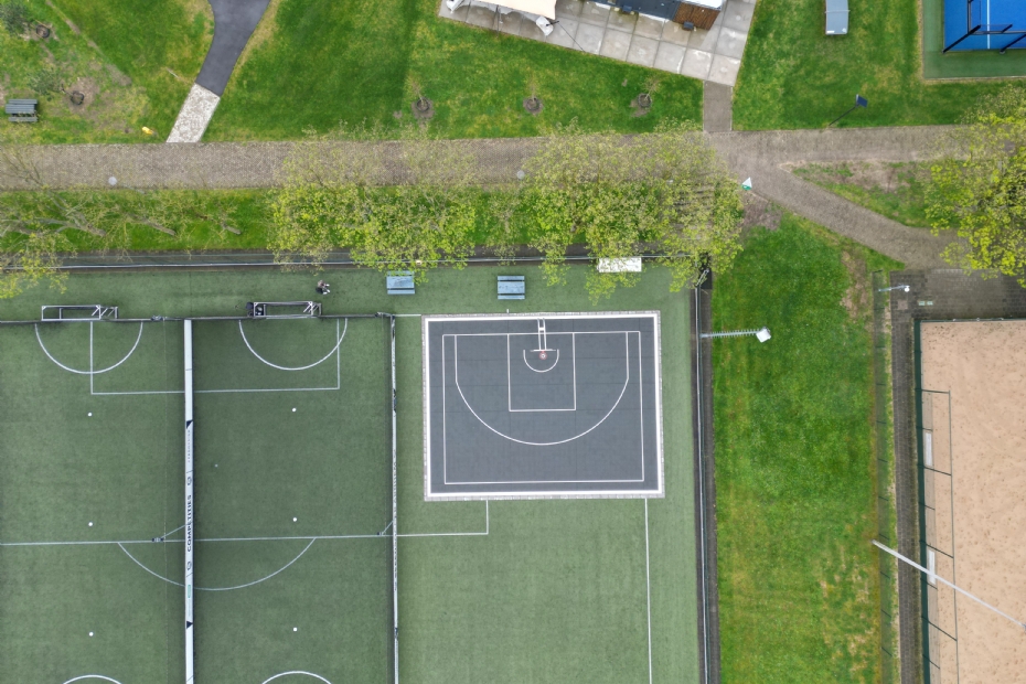 Een probleem van de sport oplossen in de sport: Arnhem timet perfect met 3x3-basketbalveld van gerecycled kunstgras |