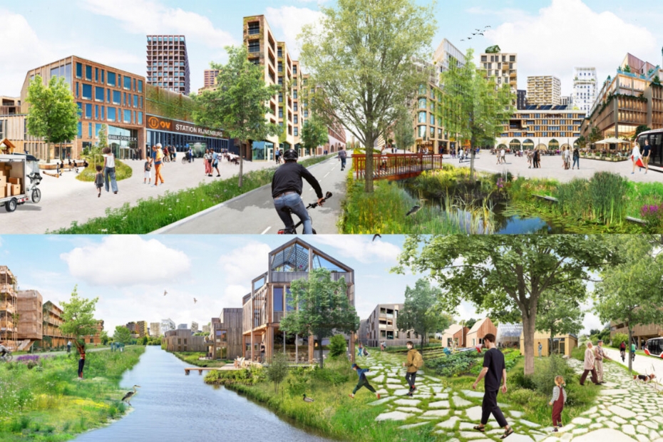 Een opvallend kenmerk van Rijnenburg is de combinatie van groen en water. Dat zal in het stadspark zorgen voor verkoeling en kan bovendien helpen om zware regenbuien op te vangen