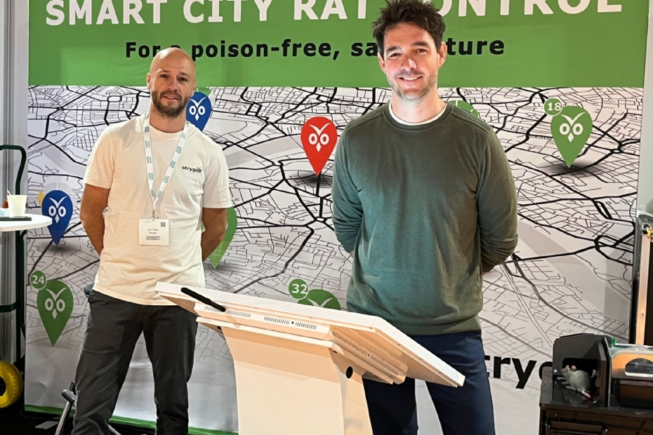 Rattenproblematiek slim én gifvrij bestrijden doen ze bij Strygoo. Dries Verdonck (l) en Jan Claes van de jonge start-up zijn pas 3 jaar bezig maar hun rattenvang systemen zijn al te vinden in grote steden zoals Parijs en binnenkort New York. In Nederland zijn ze te vinden in zo'n 30 steden. Niet zo gek aangezien Rattenbestrijding sinds 1 januari 2023 gebonden is aan strenge regelgeving.