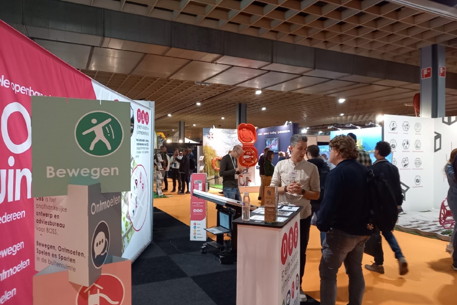 OBB, Arjan Vreugdenhil. Tijdens deze beurs presenteren ze de belangrijkste lessen uit de 'Kennisdag Circulaire Speelruimte'. De uitkomsten zijn in 24 punten uitgewerkt, toegelicht bij de stand.