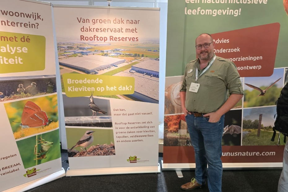 Jarno Beijk van Faunus Nature Creations, bij een nieuw concept. De rooftop reserves. Natuur reservaten voor op het dak, voor bijvoorbeeld kieviten, leeuweriken en tapuiten. De reservaten zijn in Zwitserland al met succes gepilot. Samen met SAM Groofing word er naar de ondergrond gekeken. Binnenkort in Stad + Groen te lezen!