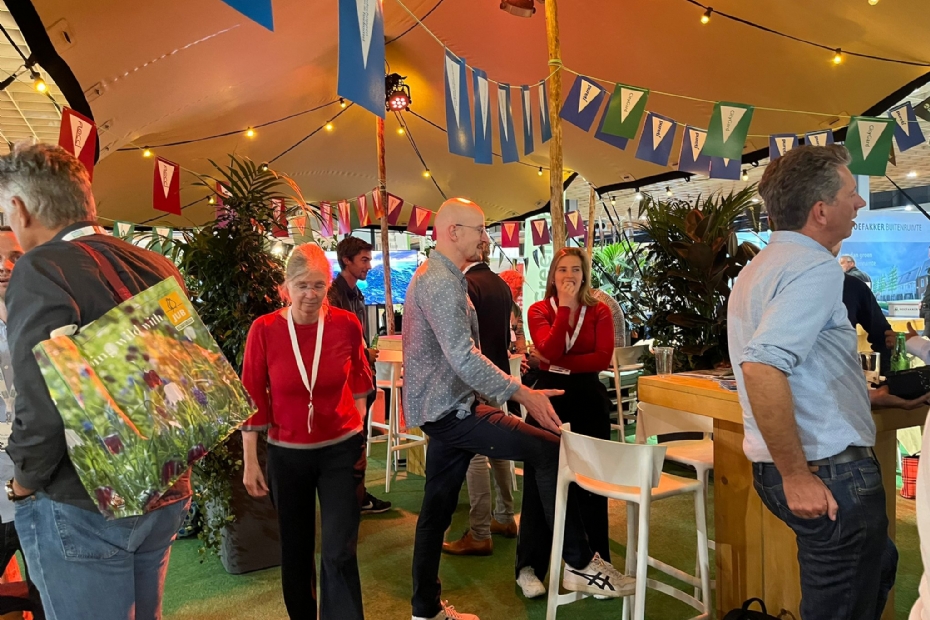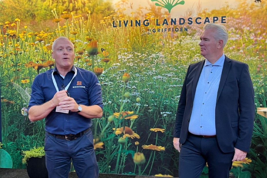 Op de stand van Griffioen Wassenaar werd het nieuwe concept Living Landscape, waarin zo'n 70% tot 90% inheemse beplanting wordt toegepast, feestelijk onthuld door directeur Stefan Verbunt en Ambassadeur van de Leefbare Stad Paul Weidema van gemeente Alkmaar Stadswerk 072.