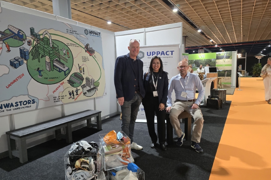 Jan Jaap Folmer, Hai Ngo Dijkstra en Michel Walstock van de scale-up UPPACT, die alle plastic reststromen, vervuilde en gemengd kunnen verwerken tot een eindproduct. Deze Green machine uit Australië is een antwoord op een groot probleem. Het is letterlijk de allereerste machine waar nu getest wordt. Volgend jaar volledig operationeel in Delfzijl.