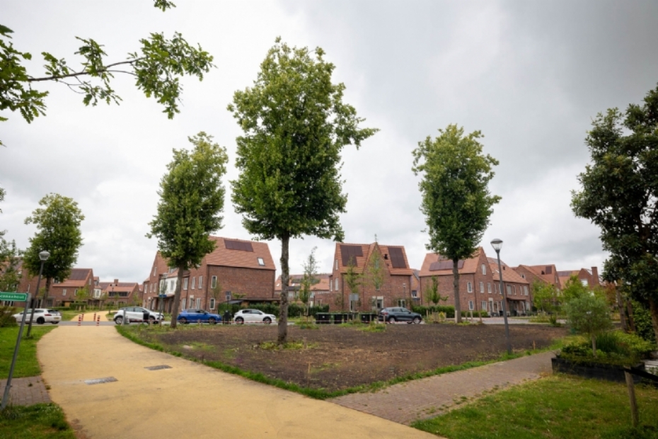 In plaats van de bomen te rooien, is gekozen voor een duurzame oplossing: de bomen zijn zorgvuldig verplant en hebben nu een prominente plek in de nieuwe wijk.