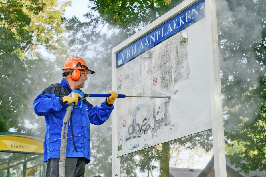 Reinigen van gevels, kunstwerken en verkeersobjecten met kokendheet water