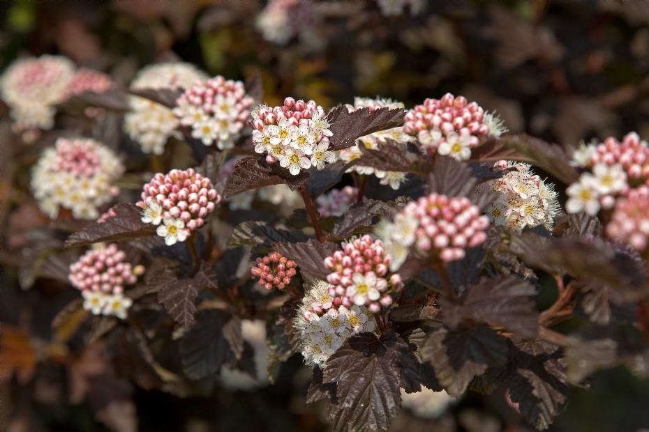 PhysocarpusNet als Diervilla is ook Physocarpus een geslacht dat de afgelopen jaren steeds populairder is geworden als sierplant, terwijl deze al veel langer een vaste waarde is in de openbare ruimte. Na de introductie van de bekende 'Diabolo' in 1995 gingen diverse veredelaars met Physocarpus aan de slag om donkerbladige cultivars te ontwikkelen en zo mee te liften op de populariteit van 'Diabolo'. Overigens werd 'Diabolo' al in 1968 gevonden, maar is er tot 1995 niets mee gedaan. Inmiddels zijn er meer dan twintig donkerbladige cultivars. In het keuringsrapport van de KVBC, dat in Dendroflora nummer 56 verscheen, wordt de donkerbladige Physocarpus in drie groepen verdeeld, hoewel het om nuances in kleur(beleving) gaat.In de roodbladigen (inclusief bruin- en purperrood) zijn 'Minall2' (ALL BLACK) en 'Perspectiva' de hoogst gewaardeerde cultivars. Beide zijn meer compacte cultivars in het sortiment, waarbij 'Perspectiva' doffe bruinrode bladeren heeft en 'Minall2' meer glanzende en meer purperrode bladeren. Laatstgenoemde is overigens een van de mooiste en beste donkerbladige cultivars. In de meer bruinbladige (inclusief rood- en purperbruine) cultivars worden 'Hoogi016' (LITTLE ANGEL) en 'Mindia' (DIABLE D'OR) aanbevolen. Hoewel de bladeren van beide cultivars als 'bruinbladig' worden omschreven, verschillen ze behoorlijk. Bij LITTLE ANGEL zijn de bladeren roodbruin, terwijl ze bij DIABLE D'OR bruin zijn. Opvallend bij DIABLE D'OR is dat de jonge bladeren fel roodbruin zijn en dat ze, als een van de weinige cultivars, een rode herfstkleur geven. De laatste groep (zwartbladig, inclusief bruin- en purperzwart) bevat de cultivars met de donkerst gekleurde bladeren. 'Rubella' is qua groeiwijze het beste te vergelijken met ALL BLACK, maar de bladeren zijn nog iets donkerder. De Engelse 'Jonight' (MIDNIGHT) heeft, samen met 'N5' (PANTHER) de zwartste bladeren in het sortiment. Beide zijn vrij opgaand groeiende cultivars die later vrijwel rond worden. Pittosporum tenuifolium 'Tom Thumb''Dankzij' klimaatverandering kunnen verschillende gewassen nu in onze tuinen worden toegepast waar dat voorheen niet kon. Een van deze soorten is Pittosporum tenuifolium. Deze wintergroene, van origine Nieuw-Zeelandse heester kan tegenwoordig op beschutte plaatsen in tuinen worden toegepast. De kleinere cultivars kunnen ook goed als potplant worden gebruikt. 'Tom Thumb' is zo'n cultivar. Laat je niet verassen door de naam (Tom Thumb is de Engelse naam voor Klein Duimpje); na meerdere jaren kan deze bolvormige heester ruim een meter hoog en zelfs iets breder worden. Het is een dichtvertakte heester met sierlijk gegolfde bladeren. Deze zijn glanzend donkerpaars. Opvallend aan 'Tom Thumb' is dat de jonge scheuten groen uitlopen in het voorjaar, wat een leuk effect geeft tegen de achtergrond van de donkere oudere bladeren.SambucusDe dagen van de oudste donkerbladige vlier, Sambucus nigra 'Guincho Purple' (synoniem 'Purpurea') liggen inmiddels ver achter ons. Er zijn de afgelopen decennia beduidend betere donkerbladige cultivars op de markt gekomen. Deels met diep ingesneden bladeren en deels met 'normale' bladeren, net zoals 'Guincho Purple'. Het sterkst op 'Guincho Purple' lijkend is 'Thundercloud'. Deze forse struik groeit breed spreidend-opgaand en de bladeren zijn dof purperbruin. Ze blijven 's zomers langer donker dan bij 'Guincho Purple'. Ook bloeit 'Thundercloud' rijker en zijn de bloemen, en vooral ook de bloemknoppen, meer roze van kleur. Ook vergelijkbaar is 'Gerda' (BLACK BEAUTY), waarvan de bladeren donkerder purperbruin zijn en 's zomers lang 'op kleur' blijven. Eveneens met blad dat niet is ingesneden, maar met een smal(lere) opgaande groeiwijze, is Sambucus nigra 'Eiffel01' (BLACK TOWER). De jonge bladeren zijn groen, maar al snel kleuren deze purperbruin. Weliswaar iets lichter dan bij BLACK BEAUTY, maar toch duidelijk donkerbladig. De plantvorm van BLACK TOWER is natuurlijk veel interessanter. Het is bij uitstek een plant die als solitair toegepast kan worden. En vanwege de slankere vorm is deze ook geschikt voor kleinere tuinen.Ook van de peterselievlier, de vorm met zeer diep ingesneden deelblaadjes, zijn donkerbladige vormen. Na de introductie van BLACK BEAUTY volgde 'Eva' (BLACK LACE). Deze heeft dezelfde breed spreidend-opgaande groeiwijze, maar dus met het veel fijnere loof van de peterselievlier, dat glanzend, donker purperbruin is. Een nieuwere cultivar is Sambucus nigra 'Hyfjolais' (CHERRY LACE). De handelsnaam verraadt het al: de bladeren zijn meer roodpurper, wat de plant wellicht iets minder somber doet overkomen.