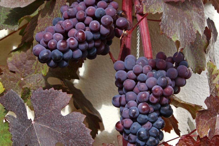 Vitis vinifera 'Purpurea'Een klimplant is eigenlijk ook een heester; daarom aandacht voor de donkerbladige sierdruif. Het is een niet al te sterk groeiende klimplant met olijfgroene jonge bladeren die spoedig dof purper kleuren en deze kleur de rest van het seizoen behouden. De donkerblauwe druiven zien er mooi uit en geven de plant extra sierwaarde. Maar ze zijn bitter en zitten vol met zaden, wat ze niet erg eetbaar maakt. Maar de plant kan voor leuke effecten in beplantingen zorgen. Hou er wel rekening mee dat 'Purpurea', net als alle Vitis vinifera overigens, meeldauwgevoelig is.