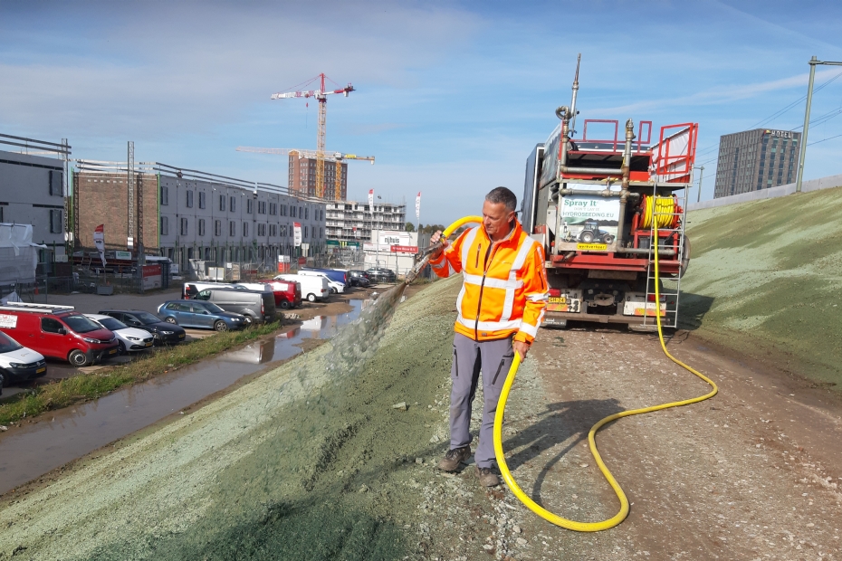 'Bij hydroseeding wordt het zaad gelijkmatig verspreid. Het verstuift niet en spoelt niet weg'