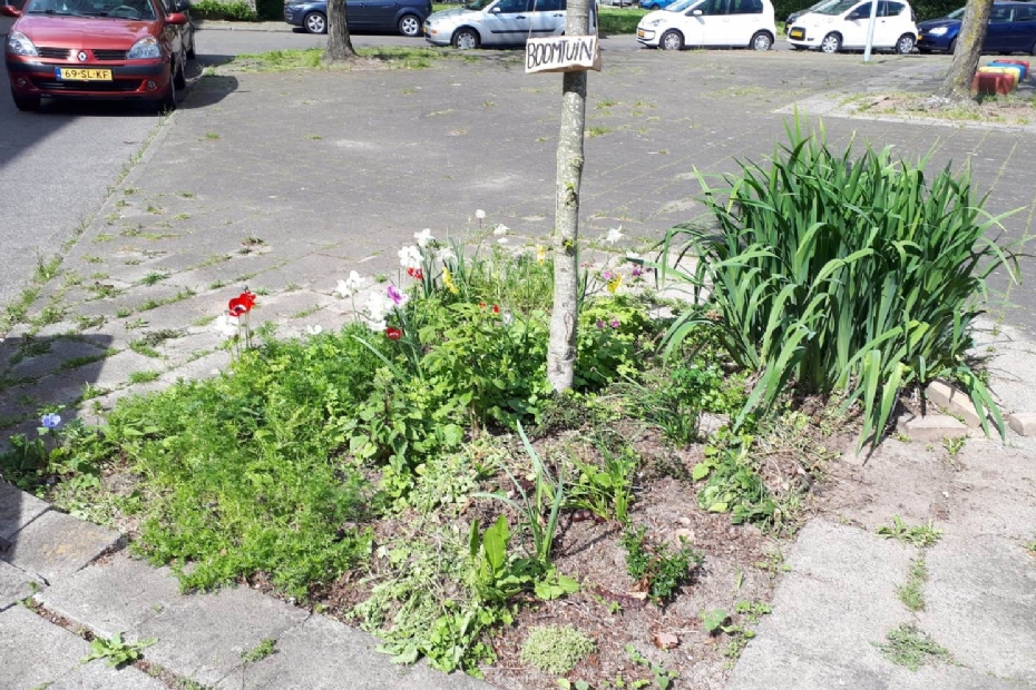 | Een boomspiegel omgevormd tot 'boomtuin' in Utrecht |