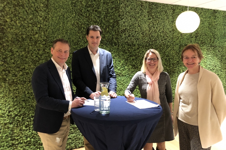 | Op donderdag 30 januari ondertekenden Nina Vermeulen (WUR), Marc van Rosmalen (Koninklijke VHG) en Marc Collast (Menzis) de samenwerking rondom het project 'Zorg voor Natuur'. |