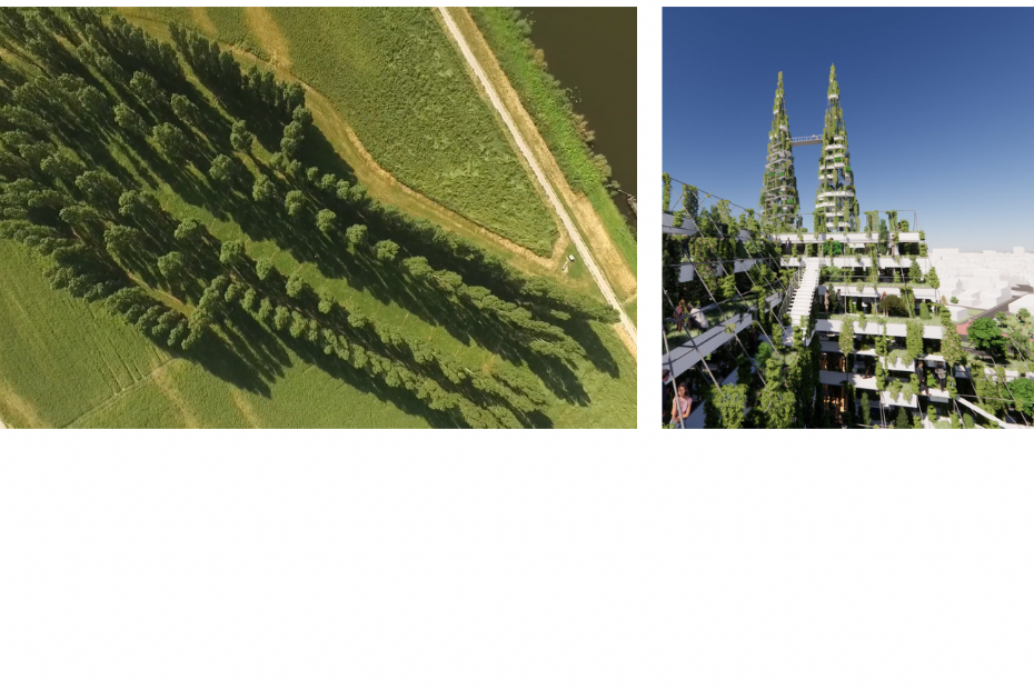 De Groene Kathedraal in Almere (links) en een impressie van de kathedraal die in Tilburg zal verrijzen