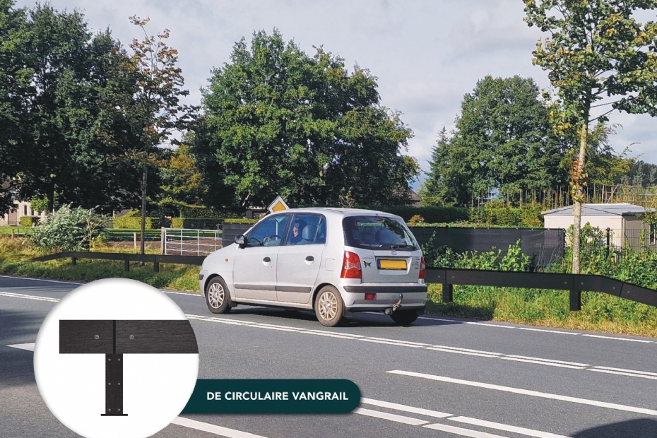 De geleiderail is ontwikkeld als reactie op de groeiende vraag naar duurzamere infrastructuurmaterialen en een vermindering van berm- en zwerfafval. In de productieketen wordt afvalkunststof verwerkt tot recyclebare balken en planken in de fabriek van UPPACT in Farmsum. VERHEES PRODUCTS vervaardigt hieruit onderdelen die vervolgens door STEEL CONSTRUCTIONS op de stalen rails worden gemonteerd en geplaatst.