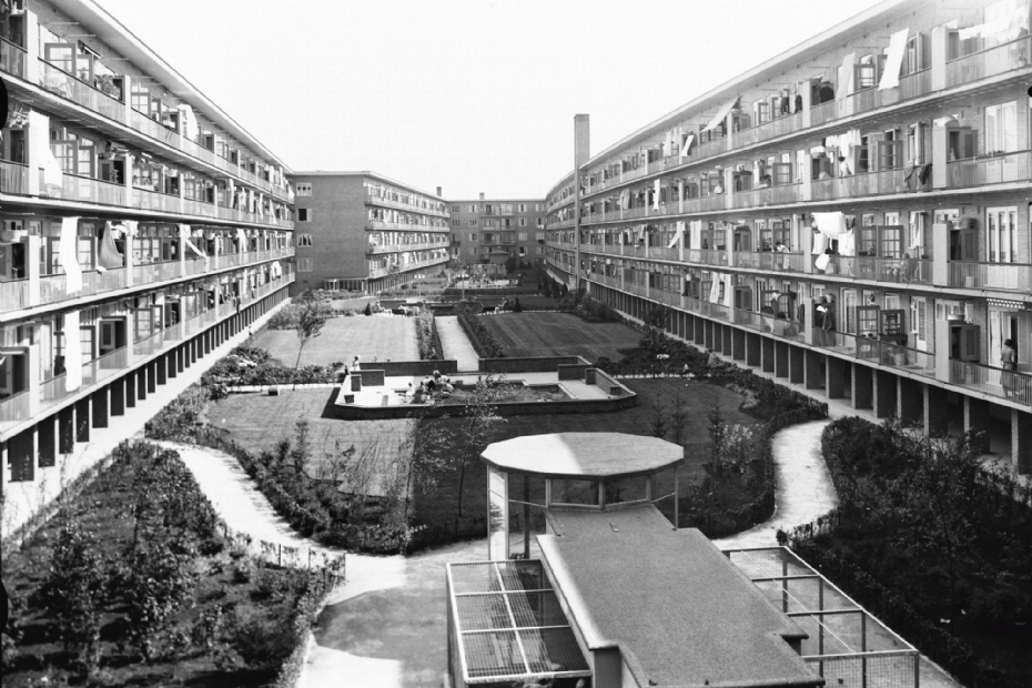 De tentoonstelling 'De mensen van Geuzenhof' is uit onderzoek van datajournalist en informatieontwerper Gerlinde Schuller ontstaan. Het wooncomplex de Geuzenhof in Amsterdam-West die 90 jaar geleden is gebouwd en ontworpen vanuit sociale visie, met een vraag die heden nog relevant steeds is: hoe kan je tegelijk groen en sociaal bouwen?