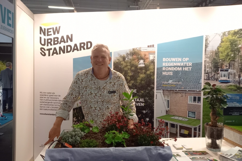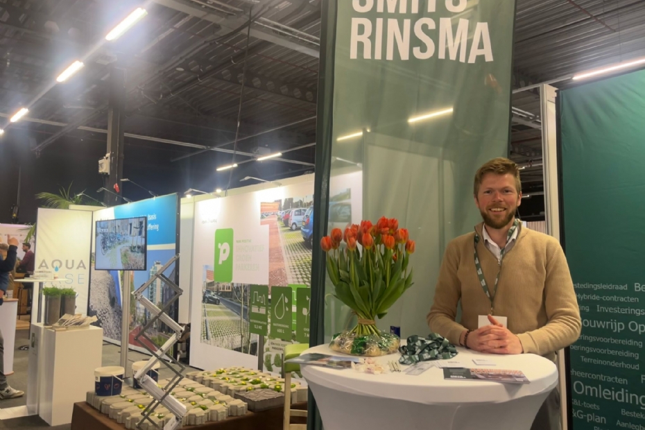Niek van Langen van SmitsRinsma: 'Groen is een heel belangrijk thema in de huidige klimaatontwikkelingen. Daarom zetten we groen centraal in onze projecten. Daarbij gaat het ons niet alleen om verdere vergroening, ook om het instandhouden en verbeteren van bestaand groen. We betrekken daar ook andere disciplines bij, zoals die gericht op water (blauw). Dat zorgt voor een ecosysteem. Over het algemeen is de kennis er wel, maar we moeten vooral gaan dóén en daarbij integraal denken en dat is waar we hier op de beurs met onze partners voor staan.'