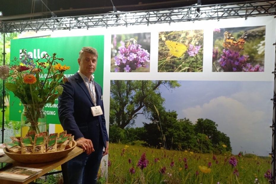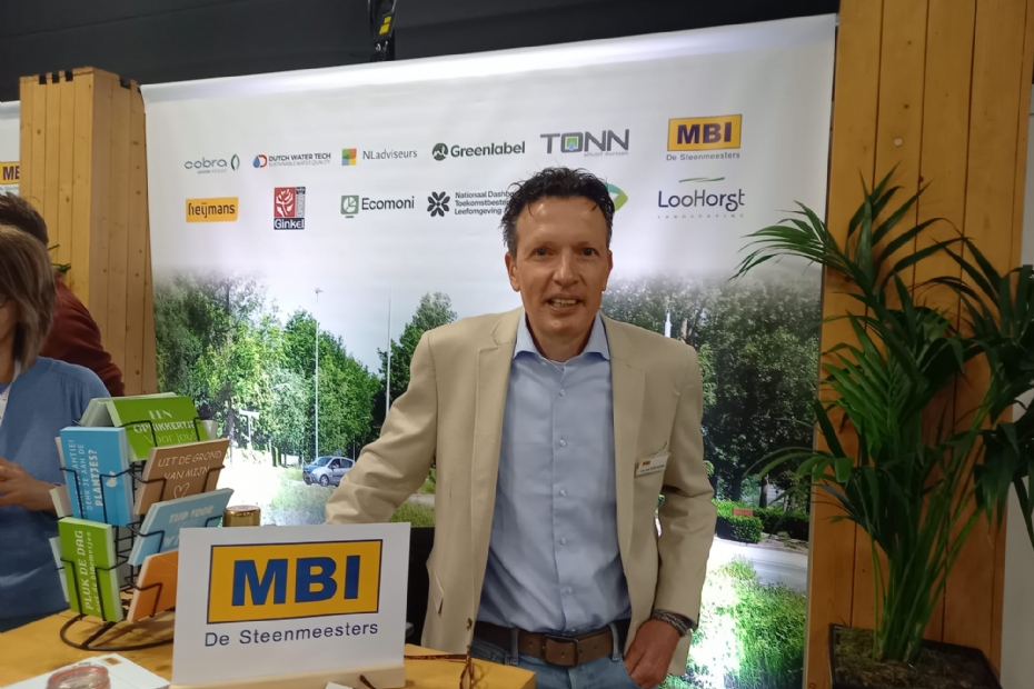 Arne van Engelen van Koninklijke Ginkel Groep stond ook op het NL Greenlabel plein. Wat dit jaar meer een gezellig straatje was.