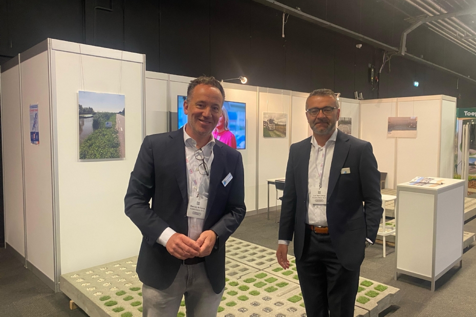Bij Anders Beton bieden ze oplossingen voor klimaatadaptie in de vorm van zware, betonnen platen die water doorlaten. Ook is er ruimte voor groen dat tussen de platen groeit.