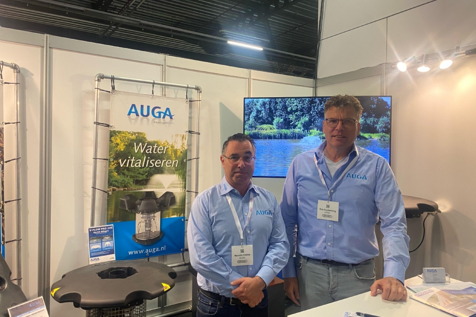 Niels Peereboom van Van Tongeren Watertechniek ontvangt Frank Valkema van EWB Urban Rainshell. De business van Van Tongeren Watertechniek is water bergen in kleine ruimtes. Voorbeeld op de stand: Amsterdam heeft veel kleine ruimtes in groot stedelijk gebied. Hemelwater word opgevangen en gezuiverd in een basin met schelpen en minaralen. Toch te veel water? Er is een overstort in gebouwd.