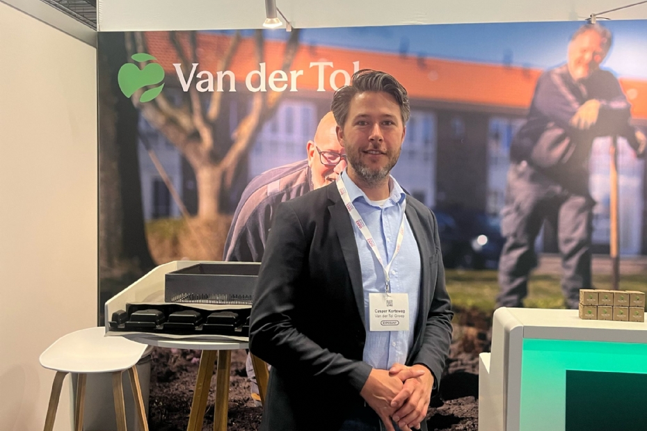 Casper Korteweg van Van Der Tol presenteerde op de beurs ook trots de nieuwe huisstijl en logo van de Amsterdamse groenvoorziener.