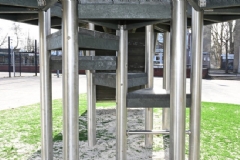 | Kunstwerk ‘Dolium’, met op de achtergrond een herplante linde die als uitgangspunt diende voor het ontwerp van het park |