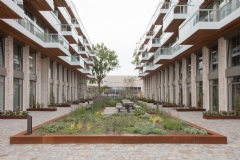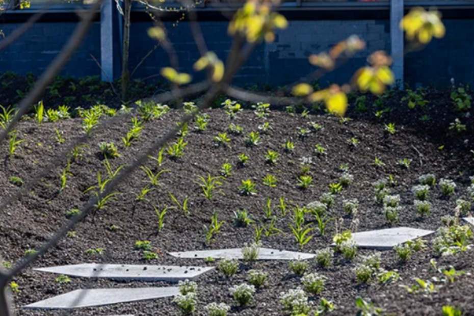 Met slimme keuzes in de opbouw en het type beplanting zijn de daktuinen onderhoudsarm én ecologisch waardevol. In totaal zijn er meer dan dertig bomen geplant, waaronder soorten als het krentenboompje, de Judasboom en de honingboom. Onder het groen ligt een systeem met retentielagen dat regenwater buffert en hergebruikt. Zo wordt de waterkringloop lokaal gesloten, wat bijdraagt aan een duurzamer waterbeheer.