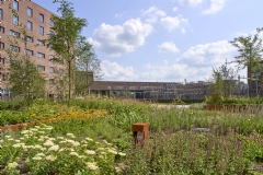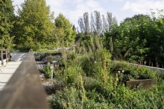 De daktuinen sluiten visueel aan op het omliggende landschap en vormen samen een gevarieerd groen daklandschap. Er is gekozen voor een intensieve beplanting met een mix van bomen, heesters, vaste planten, siergrassen en bloembollen. Daardoor bloeit een groot deel van het dak in het groeiseizoen. Dat zorgt voor voedsel en beschutting voor insecten en vogels.