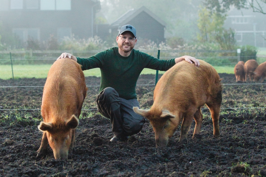 Landheer startte zijn bedrijf zo'n anderhalf jaar geleden, na een carrière als dierverzorger en expert in diergedrag bij diverse dierentuinen. 'In die tijd liep ik al mee met boeren die dit ras hadden, want je moet leren en ervaren hoe met ze om te gaan. Ik houd van de natuurlijke uitstraling van de dieren; ze hebben kracht, een leuk karakter en er is goed mee te werken. Mick is ook een heel vriendelijk dier.'
