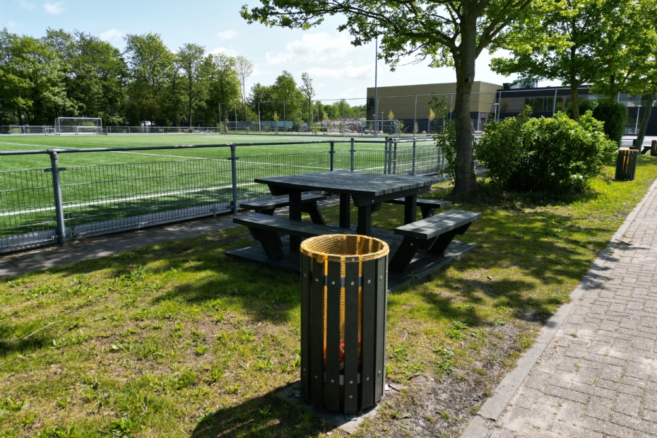 De sportfaciliteiten van de toekomst zijn niet alleen een plek om te bewegen, maar moeten ook bijdragen aan een duurzame toekomst. Zo worden er inmiddels (3x3) basketballcourts aangelegd bestaande uit modulaire sportvloeren van gerecycled kunstgras. Deze duurzame courts bieden niet alleen een lange levensduur en een circulaire oplossing, maar creëren ook aantrekkelijke en multifunctionele sportplekken in de openbare ruimte. Zaalhockeybalken van gerecycled kunstgras zijn een ander voorbeeld van circulair hergebruik binnen de sportomgeving. Ze bieden een duurzame vervanging voor traditionele kunststofmaterialen en sluiten aan bij een bredere circulaire inrichting van sport- en blaashallen. Ook de Winning & Happiness-courts dragen, naast het sporten in de openbare ruimte, bij aan circulariteit binnen de sport. Van een oud versleten kunstgrasveld naar een nieuwe gerecyclede sportvloer waarop diverse sporten kunnen worden beoefend. Naast sportvloeren speelt ook de aankleding van sportaccommodaties een belangrijke rol. Denk aan inrichtingselementen en meubilair, zoals dug-outs, fietsparkeersystemen, vlonderpaden en picknicktafels, bloembakken, zitbanken en grastegels voor parkeerplaatsen. Maar ook kleedkamerinrichting vervaardigd uit gerecycled kunstgras biedt, naast praktisch gemak, een zichtbare bijdrage aan circulariteit. Zo ontstaat een sportomgeving waarin elk onderdeel, van bloembak tot fitnesstoestel, bijdraagt aan minder afval, meer hergebruik en een lagere milieu-impact. Gemeenten en beheerders, maar ook verenigingen kunnen hiermee concreet invulling geven aan hun duurzaamheids- en grondstoffenbeleid.