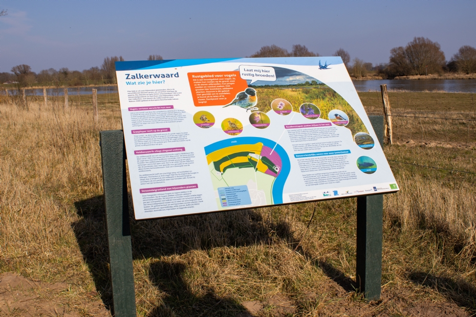 Natuur en Milieu Overijssel, dat samen met onder meer de provincie de aanpassingen in het natuurgebied langs de IJssel heeft ontworpen, heeft zorggedragen voor de plaatsing van de informatieborden. 'Het is een Natura 2000-gebied dat ook toegankelijk is voor wandelaars. Daarom leek het ons mooi om borden te maken langs de wandelpaden om bezoekers informatie te geven over het Zalkerbos. Zo kan men lezen over de vogels die er broeden, de bijzondere planten, kruiden en bomen die er groeien, en vissen die in de aanpalende IJssel voorkomen. Deze borden zijn ontwikkeld samen met de inwoners van Zalk, die veel weten van de oorsprong van het gebied en prachtige foto's van de planten en dieren hebben gemaakt,' vertelt communicatieadviseur Babette van Rietschote. Zij legt uit waarom is gekozen voor de CHPL-informatieborden, geleverd door VERHEES PRODUCTS. 'We hebben heel bewust gekozen voor dit materiaal. Het leek ons heel mooi om met deze duurzame borden te werken, omdat het past bij de visie van Natuur en Milieu Overijssel en natuurlijk helemaal in een dergelijk Natura 2000-gebied. Ook de provincie Overijssel stimuleert om bij dergelijke projecten te kiezen voor een duurzame variant van materialen.'