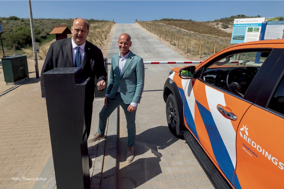 Tien jaar na de eerste plannen heeft AH Vrij de trap bij de strandopgang in Monster mogen omtoveren tot een hellingbaan. Dankzij de hellingbaan hoeven hulpdiensten en het bevoorradingsverkeer voor de strandtenten niet langer over het duinfietspad of het strand van Ter Heijde te rijden. Wat een enorme winst oplevert voor de verkeersveiligheid. Bovendien wordt hiermee ook de uitstoot van uitlaatgassen in het duingebied beperkt.