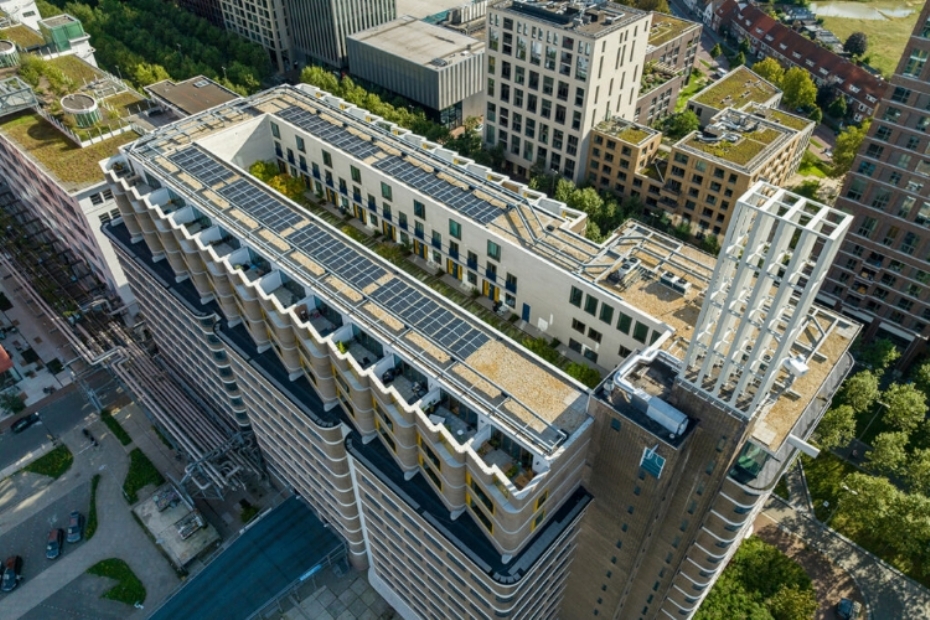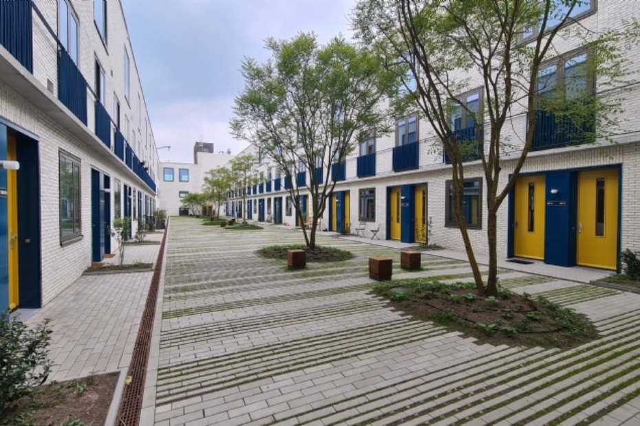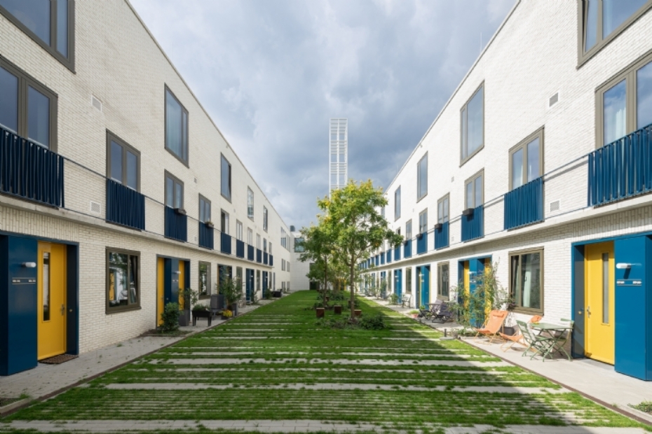 De binnentuin wordt intensief gebruikt en blijkt in de praktijk een sociale ruimte te zijn waar buren elkaar ontmoeten. Het project laat zien hoe een beperkt aantal zorgvuldig gekozen ingrediënten - Koelreuteria's van Van den Berk, Hydro Lineo-grastegels van Struyk Verwo en poefjes van Grijsen - kan leiden tot een hoogwaardige, groene woonomgeving op hoogte.