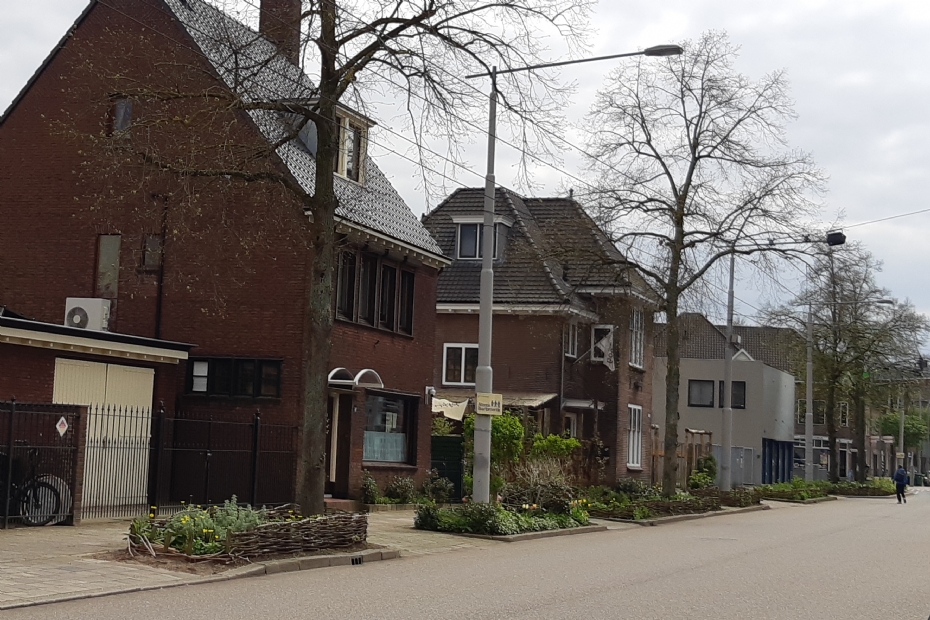 Beeld ter illustratie: Grote plantvakken met wilgenvlechtwerk (gemeente Arnhem samen met buurtbewoners)