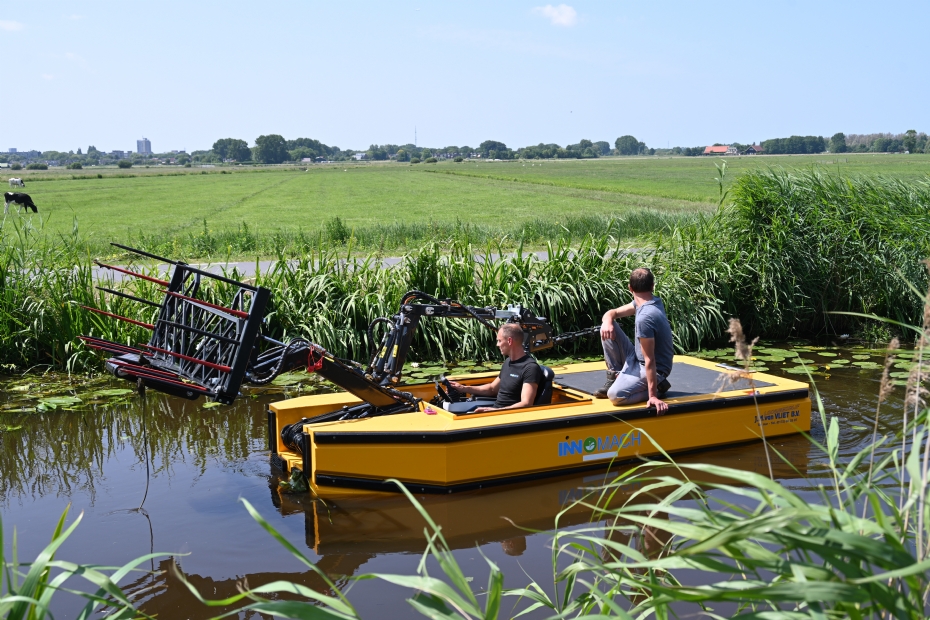 De ontwikkeling van de maaiboot staat bepaald niet stil. Bij de recente tewaterlating van de eerste twee exemplaren van de volledig elektrische maaiboot Innomach Raptor in Oud Ade bleek dat er nog volop innovatie mogelijk is. De boten werden in gebruik genomen door Gebr. Van de Poel en J.M. van Vliet, twee aannemers actief in het onderhoud van watergangen. Dammie van de Poel van Gebr. Van de Poel over zijn keuze voor de Innomach Raptor: 'Ik ken Clement Verschoor natuurlijk al heel veel jaren en toen hij vorig jaar mei met zijn plannen voor een nieuwe maaiboot langskwam, heb ik ja gezegd. Uiteindelijk heeft het allemaal wat langer geduurd. Het plan was dat de nieuwe boot in september klaar zou zijn. Dat is dus begin juni geworden.'