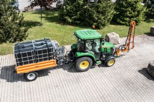 Het bewateringssysteem WTS-TS 2000 is ontworpen voor gebruik met de compacte Matev Trailer TRL-3D 20. Dankzij een breedte van slechts 140 cm is het systeem uitermate geschikt voor smalle routes zoals fietspaden en stadsparken. De unit bevat twee IBC-tanks en kan water innemen via een brandkraan, tankopening of door aanzuiging. De gebruiker kan kiezen uit verschillende manieren om water af te geven, waardoor het systeem makkelijk inzetbaar is voor uiteenlopende situaties. Dit maakt het een flexibele oplossing voor gemeentes en aannemers die op zoek zijn naar praktische en zelfstandige bewateringsoplossingen.