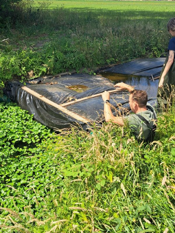 Invasieve waterwaaier aangepakt met lichtdichte folie