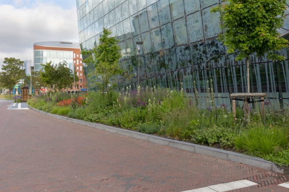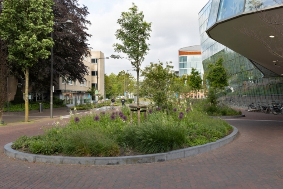 De gemeente Alphen aan den Rijn heeft een pilotproject ontwikkeld om groen meetbaar in te zetten als oplossing voor een gezonde, klimaatadaptieve en biodiverse leefomgeving. Binnen deze pilot heeft Koninklijke Ginkel Groep het Stadhuisplein sterk vergroend met een focus op hittereductie, waterberging én het creëren van meer biodiversiteit in het centrumgebied.