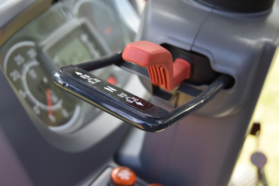 Op dat moment komt Kees Verbeek aanrijden. Hij blijkt de vaste chauffeur te zijn van de emissieloze MF E-1700, die een exacte kopie is van de 50 pk MF 1750, alleen elektrisch. Verbeek is dik tevreden en prijst de compactheid van de vrij smalle tractor. Ook de bestuurderszitplaats en zicht vanuit de cabine noemt hij goed. Hij wijst hij op de handige schuif links van de verstelbare bedieningskolom waarmee hij voor- en achteruit kan schakelen en de snelheid kan regelen.