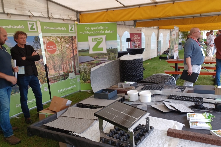 De mannen van ZinCo krijgen veel vragen over groene daken. 'In principe is alles mogelijk. Wij geven het passende advies en helpen hoveniers ook op locatie op weg bij de installatie. '