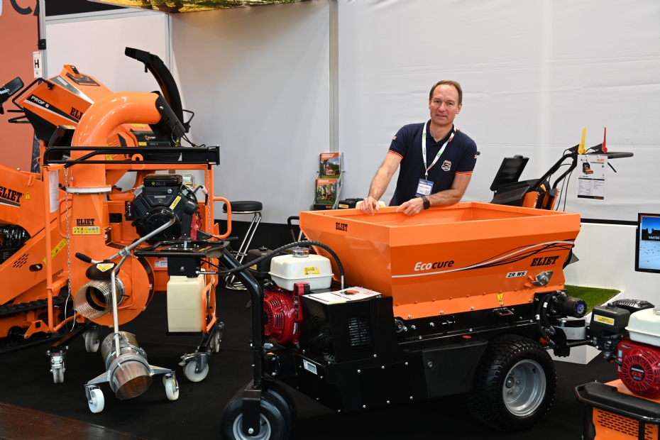 Eliet liet een zelfrijdende topdresser zien: de EcoCure ZR WS (Zelf Rijdend Wide Spread) . De bak is relatief klein en werkt met twee spindels over een breedte van ongeveer drie meter. Het concept is relatief nieuw, maar wordt nu al compleet aangepast. De machine wordt omgebouwd tot een walk-behind zelfrijder, zodat niet alleen zand kan worden verspreid, maar ook andere werktuigen gemonteerd kunnen worden. Daarmee wil Eliet de machine breder inzetbaar maken voor terreinonderhoud en lichte transporttaken. Verdere details volgen op Agribex in België, waar de vernieuwde versie wordt getoond. Eliet wordt in Nederland gedistribueerd via Stierman de Leeuw.