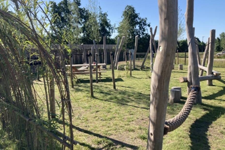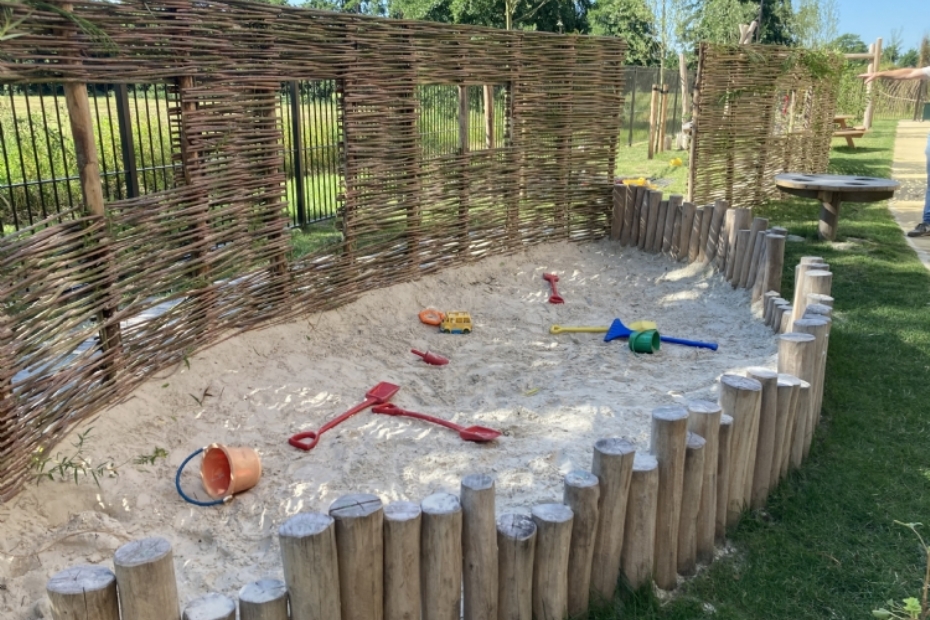 Zo liggen er overal lichtgekleurde betonpaden met daarlangs muren van gevlochten wilg en zijn de speeltoestellen allemaal van hout. Het plein is voor leerlingen van speciaal onderwijs en dat vraagt aandacht bij de uitwerking.