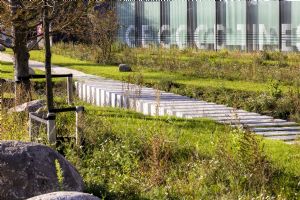 | De groene strook versterkt de verbinding tussen gebouw en omgeving - (foto: Cojan van Toor Fotografie) |