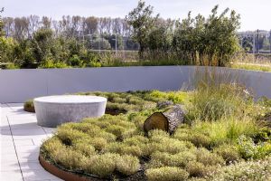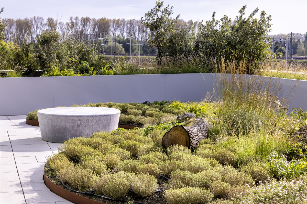 Op verschillende plekken op hoogte krijgt Mediavaert groene daken en terrassen met plantenschalen. Dit groen vormt een extra laag boven het maaiveld. Volgens TeBi Infra zijn deze onderdelen vanaf het begin in het ontwerp opgenomen. 'De terrassen zijn geen losse toevoeging, maar maken deel uit van het totale groene concept. De plantenschalen zorgen voor variatie in de beplanting en dragen bij aan de groene uitstraling van de terrassen.'