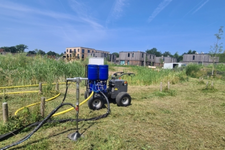 Voor een grootschalig bodemverbeteringsproject heeft Terra-fit een terrein van maar liefst 25.000 vierkante meter onderworpen aan een geavanceerde bodembehandeling met behulp van een Terra-fit unit. De bodemverbetering is met name bedoeld om de drainage te optimaliseren en daarnaast, zoals beoogd, de ontwikkeling van een bloemrijke vegetatie te stimuleren. Het betreft voornamelijk groenstroken die zijn ingezaaid met bloemrijke grasmengsels en plantvakken. Deze vegetatie vraagt om een gezonde, luchtige en goed doorwortelbare bodemstructuur.