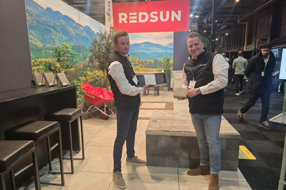 Scott van Sluijters en Christian Hoogendijk van Redsun, nieuw op de GSV, hebben court stones en de plazza's. Moderne, duurzame betonnen bestrating met de uitstraling van natuursteen, in vier onderscheidene kleuren.
