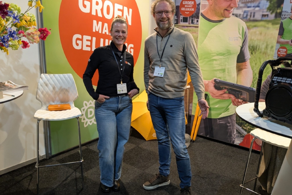 Bij Onlineveilingmeester.nl staan Laurens Damninga en Rixt Kiers op de beurs. Ze vertellen dat er met enige regelmaat veilingen zijn met kavels die interessant zijn voor hoveniers en andere groenvoorzieners. Naast het organiseren van zelfstandige veilingen voor onze opdrachtgevers, organiseren ze ook regelmatig inbreng- en themaveilingen vanaf de veilinglocaties.
