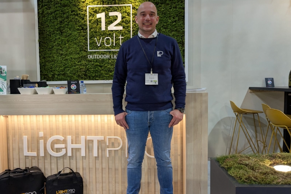 Robert San Julian van Lightpro staat in Hardenberg om de naamsbekendheid van Lightpro te vergroten. De kracht van herhaling noemt hij het: 'Je moet zichtbaar zijn en je gezicht te laten zien. Ik merk dat we steeds bekender worden onder hoveniers. Er is veel interesse in onze producten op deze beurs merken we.'