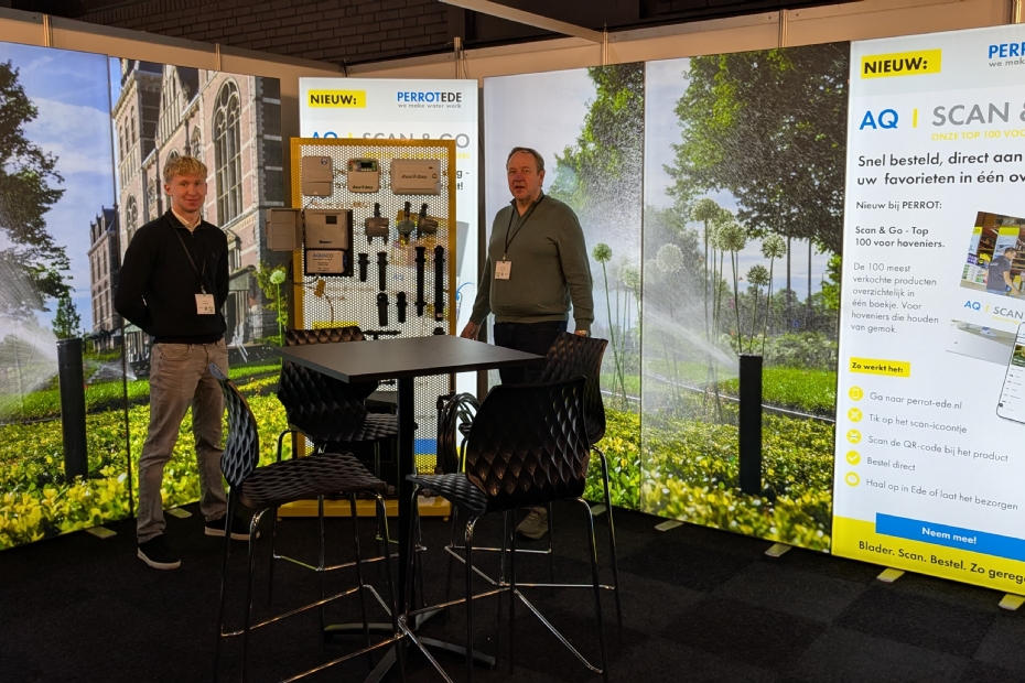 John van Kreek en Luca Natali treffen we bij Aquaco. Ze staan op de beurs met hun beregenings systemen voor tuinen en parken. Aquaco levert voor particuliere tuinen, bedrijfstuinen, openbare tuinen of parken. Ze werken samen met cultuurtechnische aannemers, landschap- en tuinarchitecten, hoveniers, gemeenten en overheden.