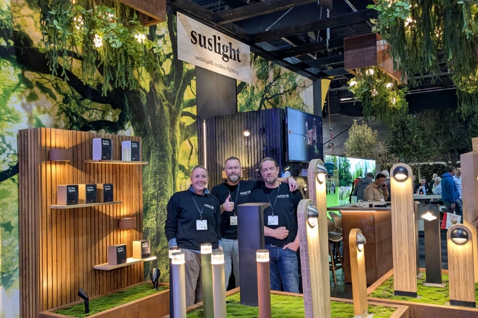 Bart van Schie en Frederique Ploeg spreken we bij Suslight Nederland. Ze staan op de beurs met een collectie buitenledverlichting, zelf ontworpen en ontwikkeld op basis van 24 volt. De verlichting werkt via het 24 volt kabelsysteem met gelijkspanning. Dit garandeert maximale veiligheid voor mens en dier, zowel bij het installeren als tijdens het gebruik. Met een IP rating van 68 zijn de (grond)kabels waterdicht.