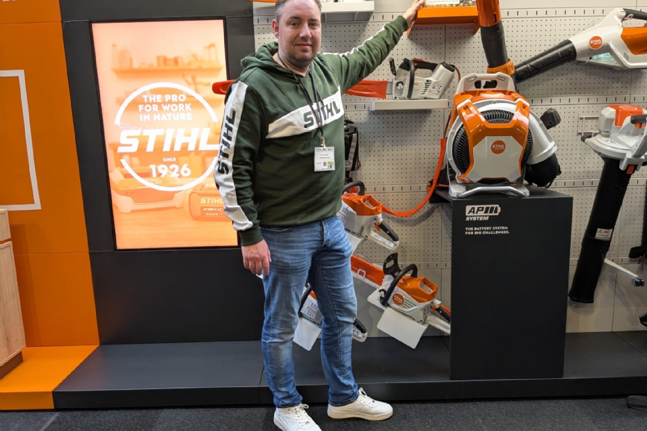 Aan noviteiten geen gebrek bij Stihl. Tommy Nagtegaal viert 100 jaar Stihl met een hele lijn nieuwe producten: 'Een van onze nieuwe uitvindingen is een verstelbare blaasmond, waarmee je zowel de lichtsnelheid als luchtdoorzet kunt regelen. Dat product bestond nog niet.' Daarnaast kun je op de stand van Stihl ook een nieuw type bosmaaier met bredere maaidiameter bekijken, zijn er twee nieuwe accusnoeischaren te bewonderen en pakt het bedrijf uit met een multisnellader waarmee je na tien minuten opladen weer aan de slag kan. 'Stihl bestaat niet voor niets 100 jaar en met deze nieuwe lijn innovaties tonen we aan over een hoop technische kennis te beschikken. De opkomst is goed bij onze stand en ook de kwaliteit van de bezoekers is erg goed. We zijn erg tevreden,' zegt Nagtegaal.