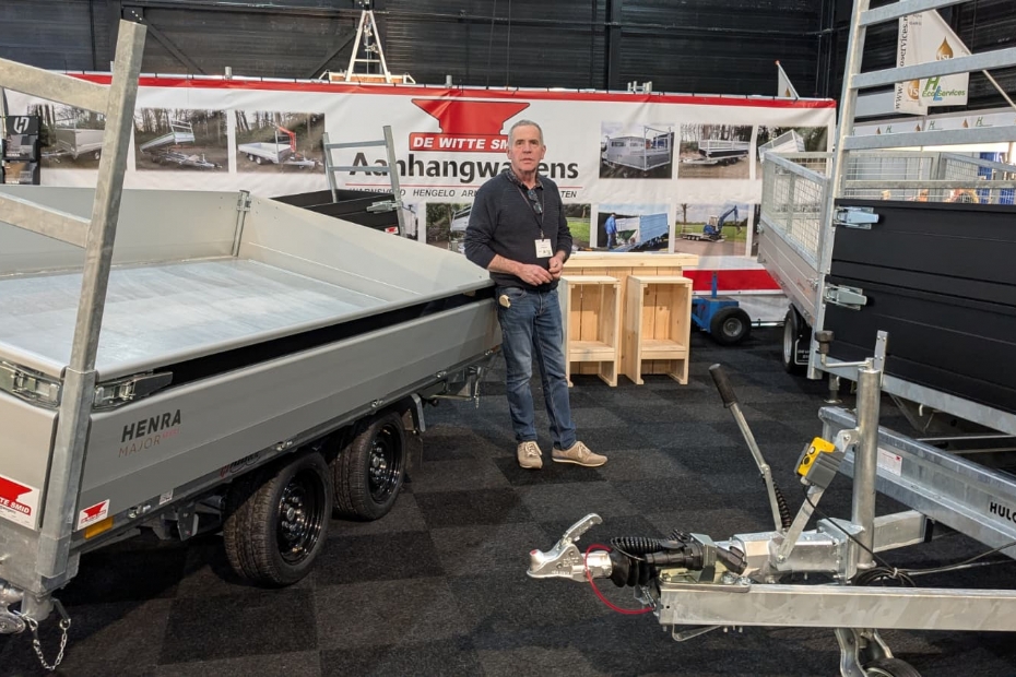 Jan Koop staat op de stand bij De Witte Smid aanhangwagens. Bij De Witte Smid kun je terecht voor alles omtrent aanhangwagens. 'Op onze vijf locaties in Oost-Nederland staan we graag voor je klaar om jouw transportvragen te beantwoorden!'